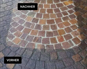 Einige Beispiele für die Reinigung und Versiegelung von Pflastersteinen.